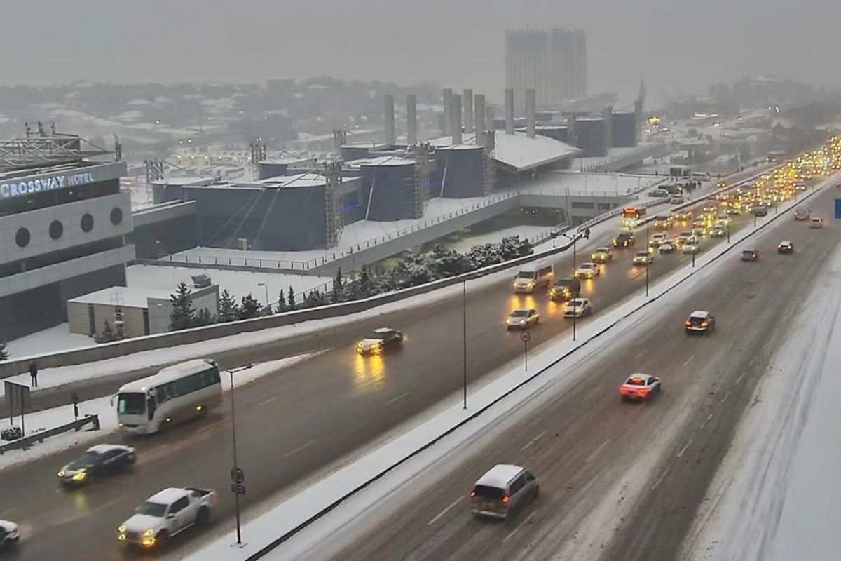 Bakının bir sıra yollarında avtomobllərin hərəkətində problem yaranıb