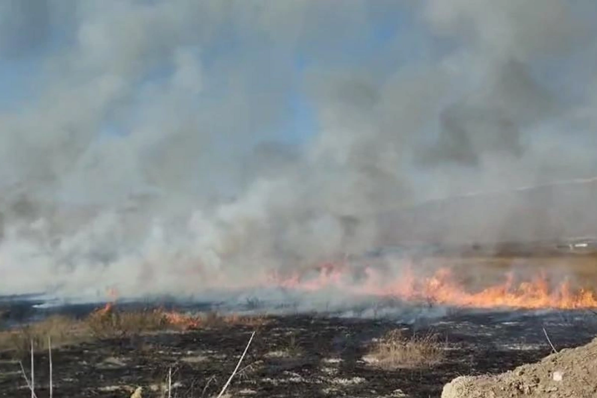 Qobustan qəsəbəsində 1 hektar ərazi yanıb