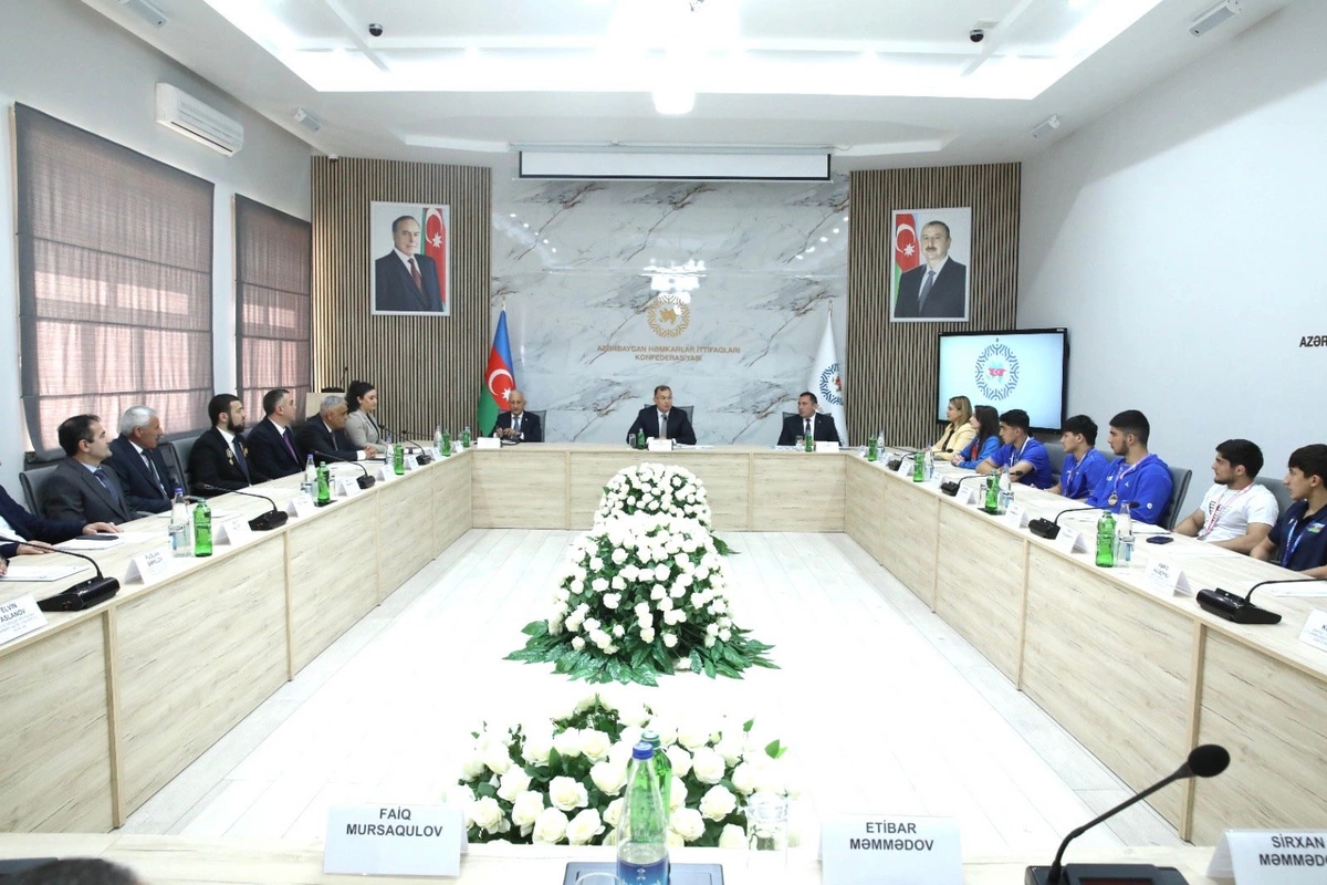 Görüşdə Azərbaycan Həmkarlar İttifaqları Konfederasiyasının sədri Sahib Məmmədov idmançıları və məşqçiləri qazanılan nailiyyətlərə görə təbrik edib. Əsası Ulu Öndər Heydər Əliyev tərəfindən qoyulan gənclər və idman siyasətinin hazırda cənab Prezident İlham Əliyevin rəhbərliyi ilə uğurla davam etdirildiyini diqqətə çatdıran Konfederasiya sədri ölkəmizin idman uğurlarından danışıb. Diqqətə çatdırılıb ki, aparılan məqsədyönlü siyasətin nəticəsidir ki, Azərbaycan idman və olimpiya hərəkatının inkişaf səviyyəsinə görə dünyanın aparıcı ölkələrindən biri hesab olunur.