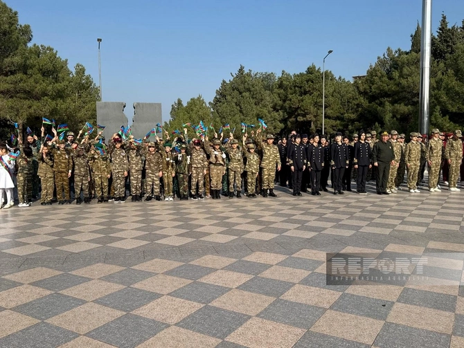 Tədbirin əvvəlində hərbi orkestrin ifasında Azərbaycanın Dövlət Himni səsləndirilib, şəhidlərin xatirəsi bir dəqiqəlik sükutla yad edilib.