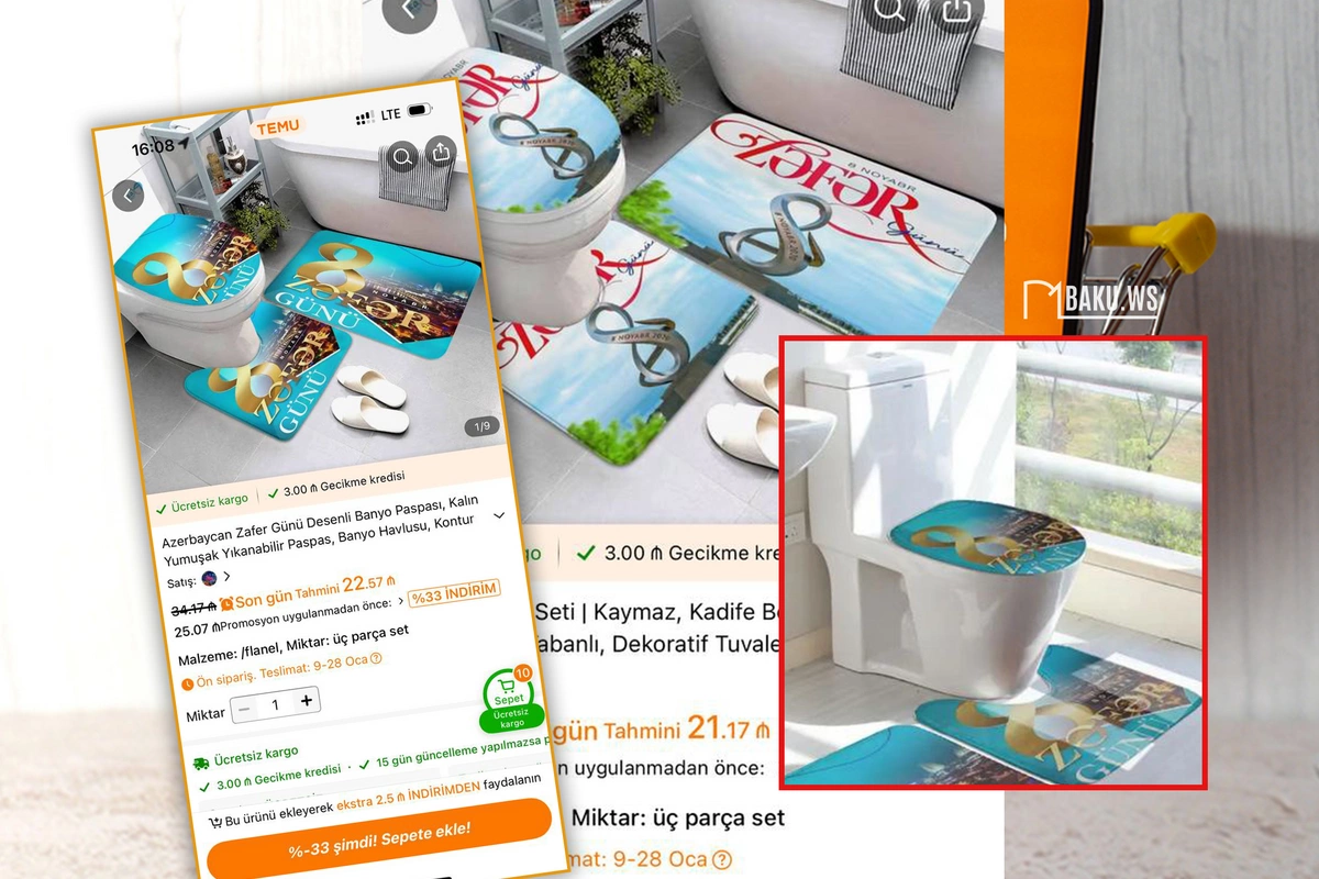 Son zamanlarda Azərbaycanda populyarlaşan "Temu" onlayn alış-veriş platformasında üzərində 8 Noyabr - Zəfər Günü yazılı, milli simvollarımız əks olunmuş hamam aksesuarları, ayaqaltılar satılır.