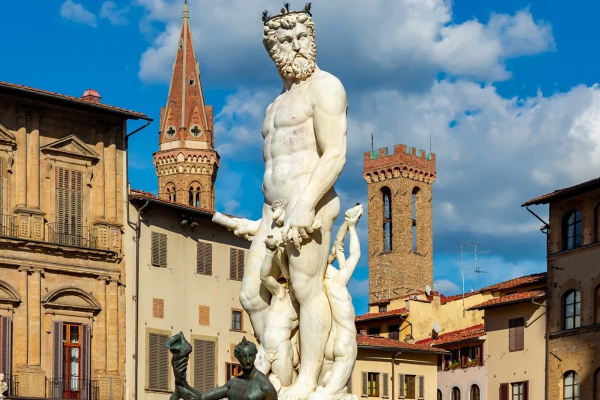1559-cu ildə heykəltəraş Bartolomeo Ammannati tərəfindən yaradılmış abidəyə dırmaşan turistin bu addımı nəticəsində müəyyən zədələr yaranıb. Yoxlama zamanı xüsusilə heykəlin at fiqurlarının ayaqlarında və bəzi dekorativ hissələrdə zədələnmə aşkar edilib.